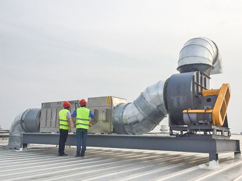 本項目是對紡織行業(yè)化纖車間生產(chǎn)過程中產(chǎn)生的廢氣進行收集減排處理,化纖車間作業(yè)時產(chǎn)生的約35000m3/h的有機廢氣,主要污染物:油霧(非甲烷總烴)≤120mg/m3。本次鑫藍環(huán)保采用1套35000CMH的初效過濾+板式靜電吸附油煙凈化的組合凈化工藝對本項目化纖車間廢氣處理,凈化后的潔凈氣體經(jīng)引風機送入排放煙囪對空達標排放。
